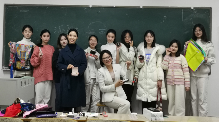 石慧老师寄语:“女性会说很重要,要避免说的太多,也要避免说的太少。”石慧老师用温文尔雅却又掷地有声,结合自身的人生经历与社会经验,向我们提出“主动”与“sister”两个关键词,我们要抓住一切机会,勇敢地去展现自己,同时也要珍惜姐妹之间陪伴与情谊,携手走向跟美好的未来!在最后彩蛋部分,由石老师给我们带来一堂缤纷多彩的彩妆课,首先是教授我们三庭五眼的专业知识,据此来判定我们适合的发型,其次运用色布,来讲色彩搭配,色彩的冷暖等等,最后给我们同学一一修眉,画眼妆,设计发型,展现出了新时代大学女性的青春色彩!石老师强调形象对女性的重要性,无论是日常生活,还是职场求职,我们必须重视形象。女性可以集温柔与坚韧与一体,我们要运用好女性独特而美丽的力量!石慧老师寄言:“这才是新时代十八岁女性!各有各的美丽,最美的18岁。”