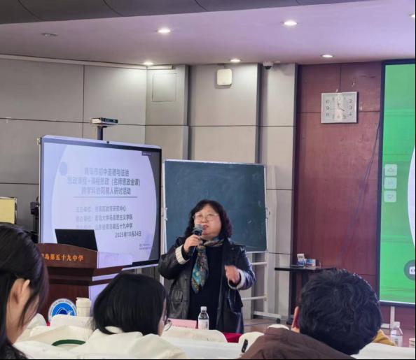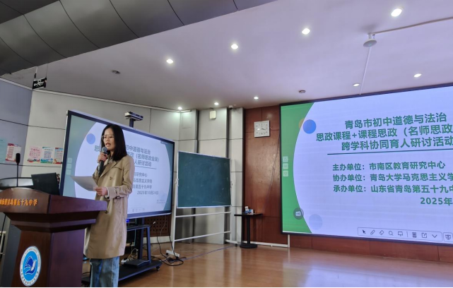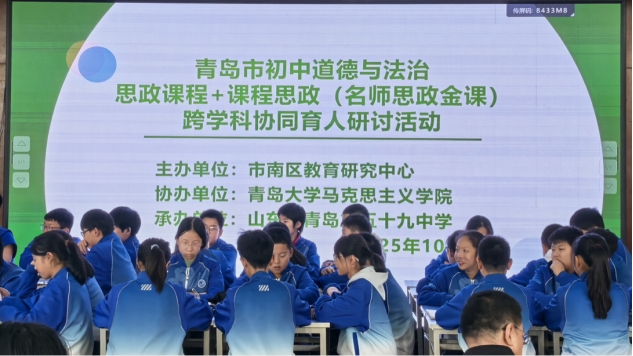 学科教学(思政)专业负责人萨日娜老师与郭金鸿老师带领2025级学科教学(思政)专业全体硕士研究生赴青岛第五十九中学青岛市初中道德与法治思政课程+课程思政(名师思政金课)跨学科协同育人研讨活动。