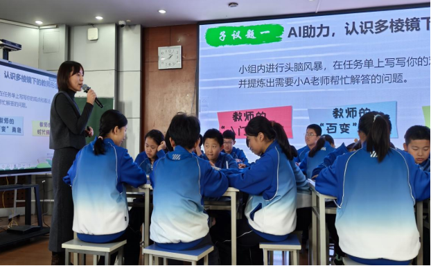 第二部分为互动式评课,由初中道德与法治骨干教师,英语老师及学生就公开课做出点评以及经验分享。大家提到:AI十分具有时代价值,要锚定教育数字化与思政创新的交汇点,此次活动为“技术赋能思政育人”提供了跨学科实践样本,具有鲜明的时代针对性;AI可以助力育人效果迭代,从“模糊感知”到“精准优化”,用AI分析教学反馈,动态调整跨学科思政设计;在教育数字化与课程思政深化推进的双重背景下,人工智能与思政课相结合,跨学科协同育人,不仅顺应了教育创新趋势,更为破解思政课“单向灌输”“学科割裂”等问题提供了新路径。