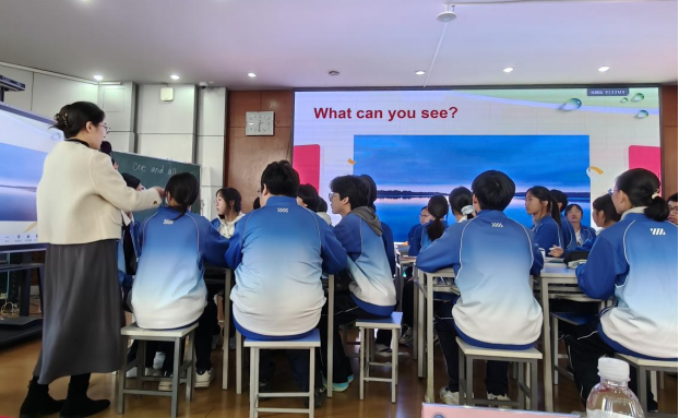 本次活动分为四个部分进行。第一部分由青岛第五十九中学肖萌老师以《走进老师》为主题,利用人工智能,等工具,采用合作探究法和情景讨论法进行课堂展示。聚焦教师职业的特性和要求,引导学生超越对老师的表面形象,进行更深层次的、辩证的思考,并将认知转化为实际行动。教学过程中使用豆包生成AI助教,教学形式新颖有趣。青岛第五十九中学张德芳老师将英语思政相结合,不仅让学生收获了“语言能力+集体意识”的双重成长,也为课程思政提供了可复制的思路——以学科知识为载体,将思政目标转化为符合学生认知的活动设计,让“立德树人”从“宏观要求”变成“课堂里的具体实践”。